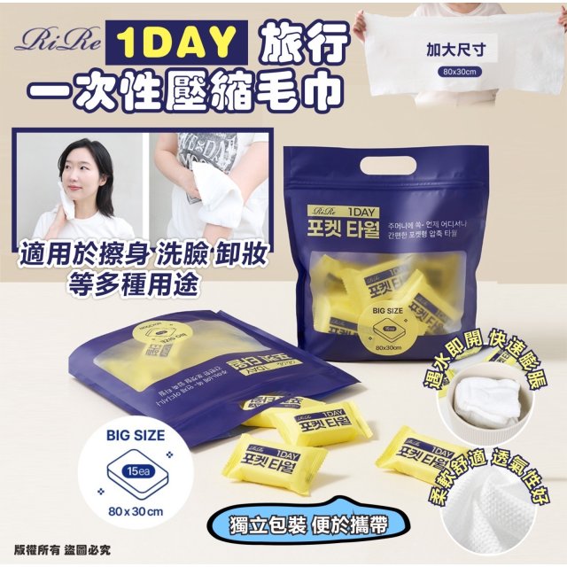 韓國 RIRE 旅行一次性壓縮毛巾 (1包15條) (10月尾)