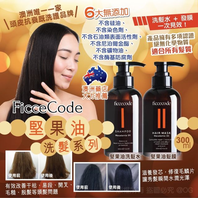 Ficce Code 澳洲製堅果油洗髮系列 300ml (11月頭)