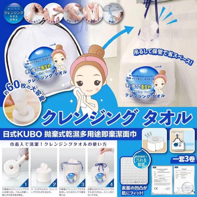 KUBO 拋棄式乾濕多用途即棄潔面巾 (1套3卷) (10月尾)