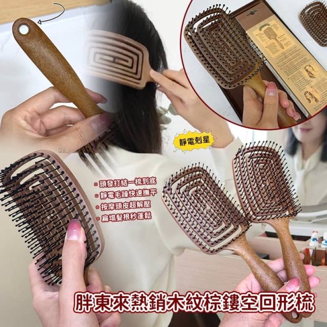 胖東來熱銷木紋棕鏤空回形梳(10月中)