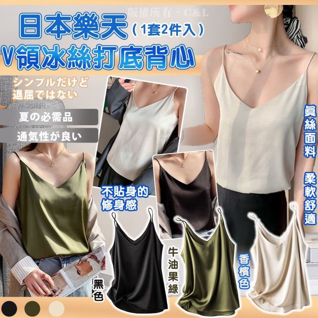 日本樂天V領冰絲打底背心(1套2件入)(9月尾)
