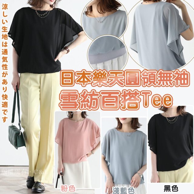日本樂天圓領無袖雪紡百搭Tee (9月中)
