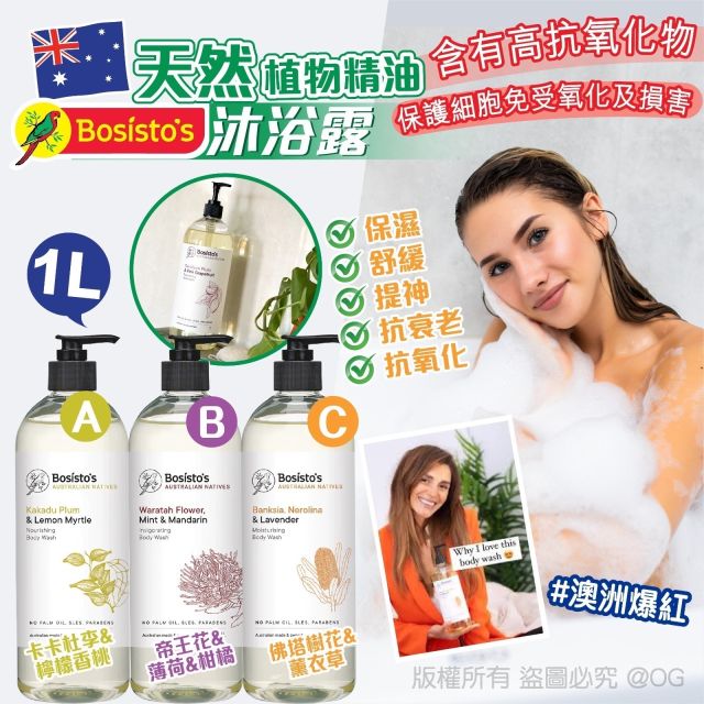 澳洲 Bosisto's 天然植物精油沐浴露 1L (10月尾)