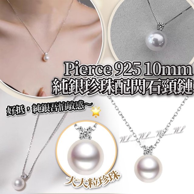 Pierce 925 純銀珍珠配閃石頸鏈 10mm (8月尾)