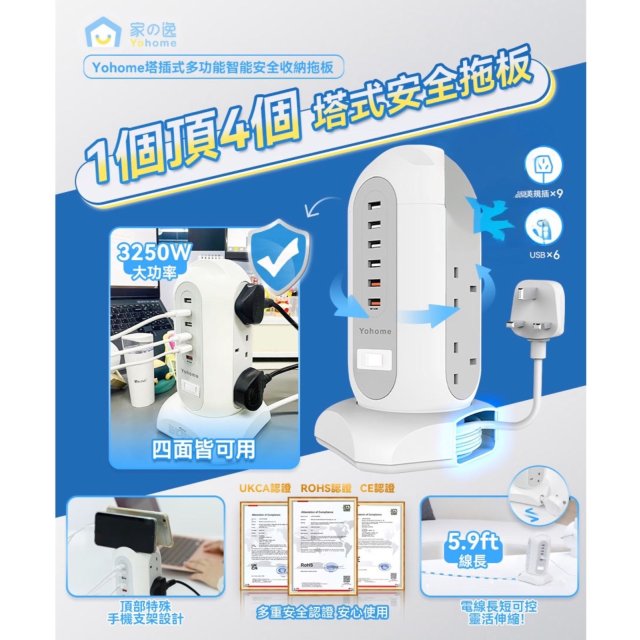 日本Yohome 塔插式多功能智能安全收納拖板(10月尾)