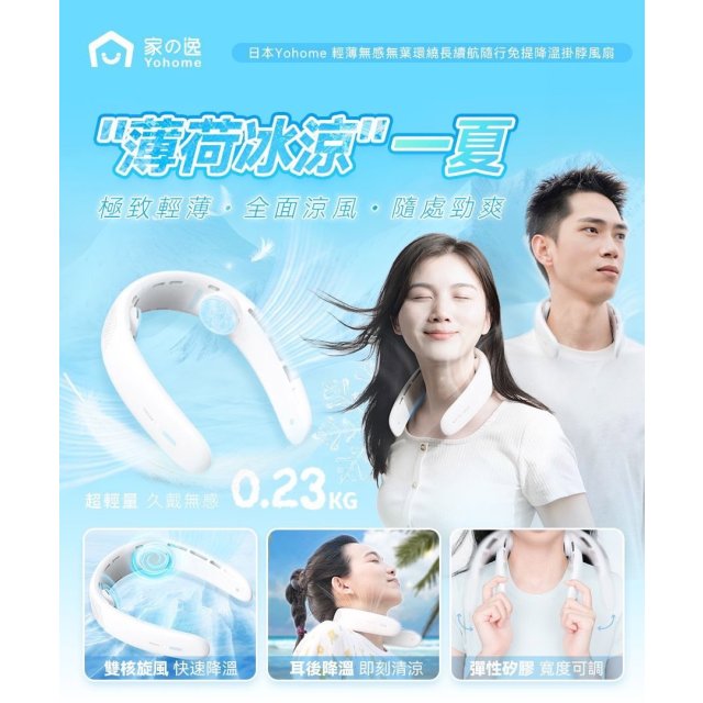 日本Yohome 輕薄無感無葉環繞長續航隨行免提降溫掛脖風扇 (10月尾)