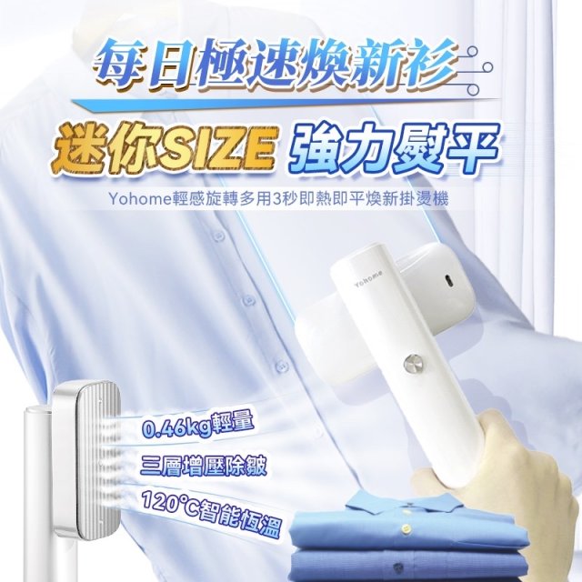 日本Yohome輕感旋轉多用3秒即熱即平煥新掛燙機(10月尾)