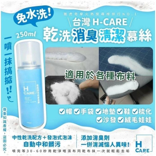 台灣🇹🇼H-Care乾洗消臭清潔慕絲 (250ml)(一套2支)