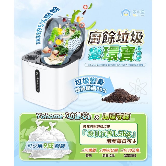日本Yohome 低耗節能降解淨味粉化多用途大容量環保廚餘機(包郵)