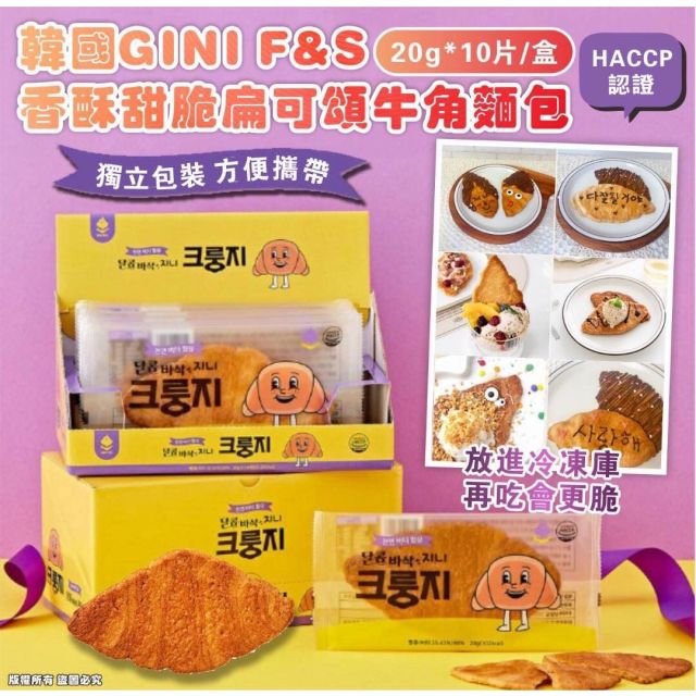 韓國 GINI F&S 香酥甜脆扁可頌牛角麵包 (1盒10片)