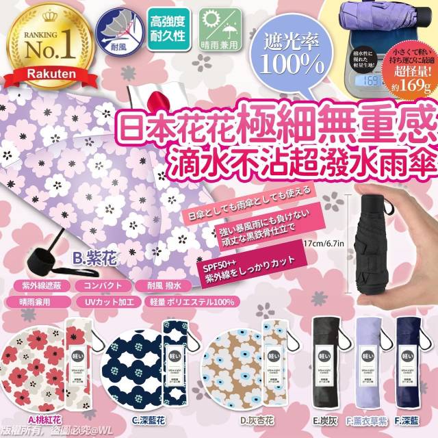 日本 SS24 Mini 花花極細無重感滴水不沾超潑水雨傘