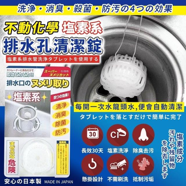 日本不動化學排水孔塩素系清潔錠單入20g(1套2個)