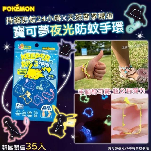 韓國寶可夢夜光24小時防蚊手環 (1包35入)