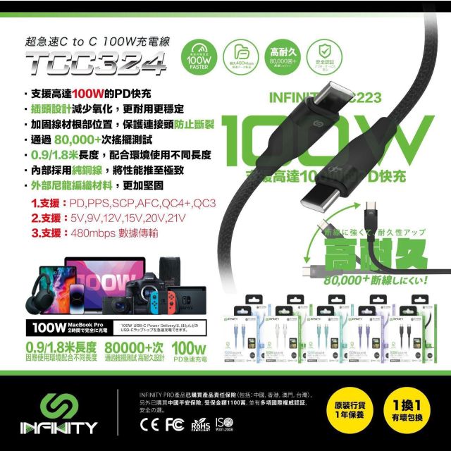 PD 100W C to C 充電傳輸線