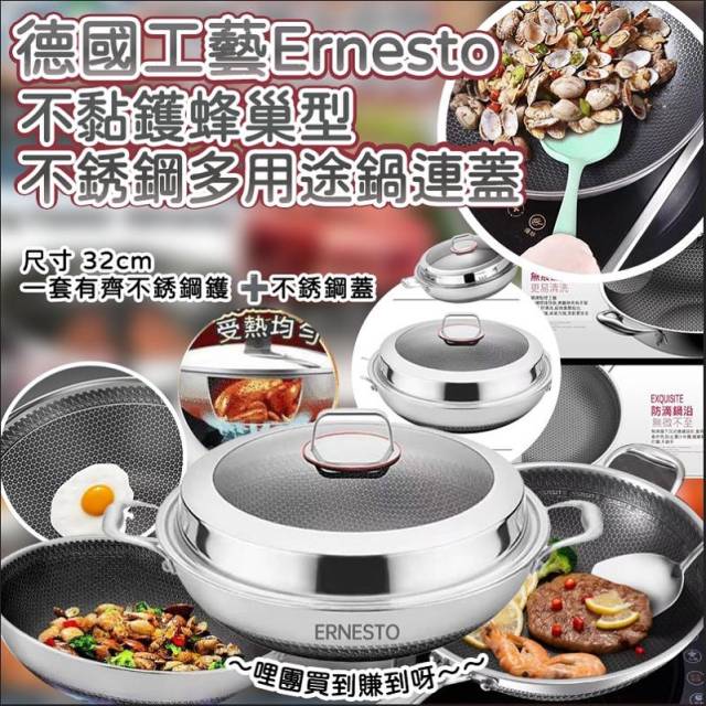 德國工藝 Ernesto 雙耳不黏鑊蜂巢型不銹鋼多用途鍋連蓋 32cm (12月中)