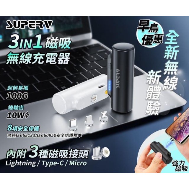 Power3 3in1 磁吸5000mAh外置充電器🧲(1月頭)