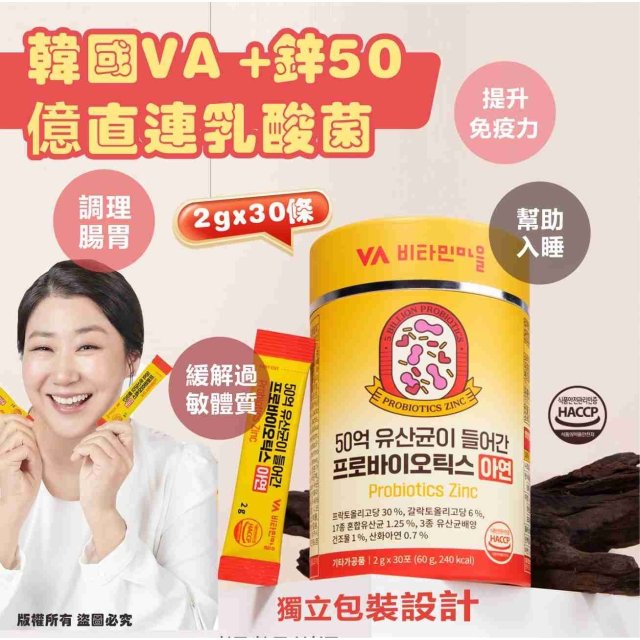 韓國 VA +鋅50億直達乳酸菌 (1桶30條) (11月尾)