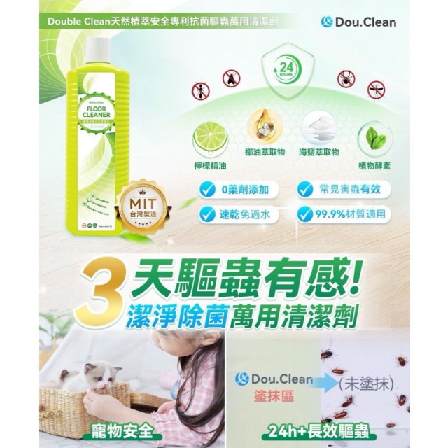Double Clean天然植萃安全專利抗菌驅蟲萬用清潔劑1 公升(10月尾)