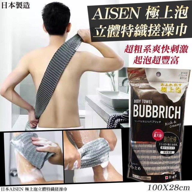 日本AISEN 極上泡立體特織搓澡巾-100X28cm (10月尾)