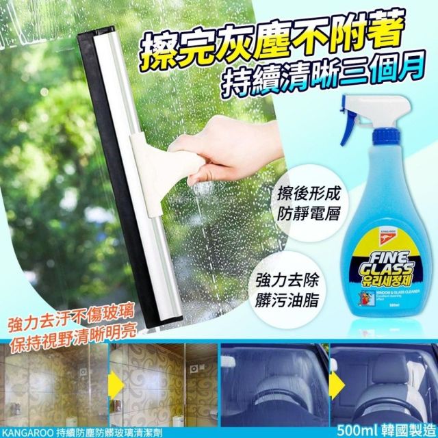 韓國製造KANGAROO 持續防塵防髒玻璃清潔劑-500ml