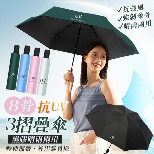 抗UV黑膠晴雨兩用8骨3摺疊傘(自動傘)