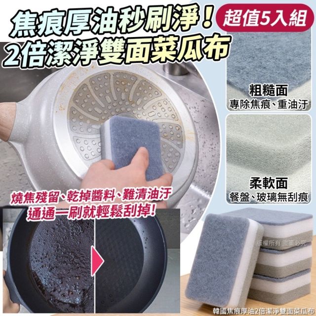 韓國焦痕厚油2倍潔淨雙面菜瓜布5入 (1套3包) (11月中)
