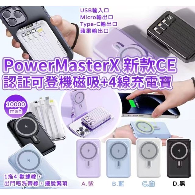 PowerMasterX 新款 CE 認証可登機磁吸+4線充電寶(11月尾)