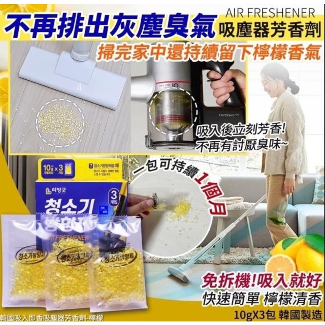 韓國 LIVING GOOD 吸入即香吸塵器檸檬香香豆 (1盒3包) (11月頭)