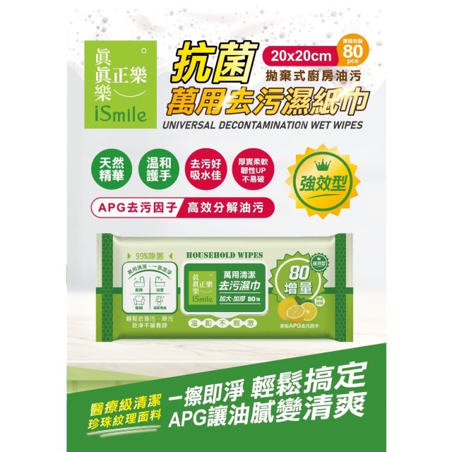 iSmile 抗菌萬用去污濕紙巾(80抽裝)《一組6包》(11月中)