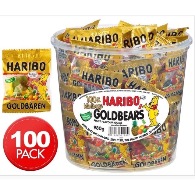 德國Haribo 桶裝熊仔糖 (100包/共980g) (11月尾)