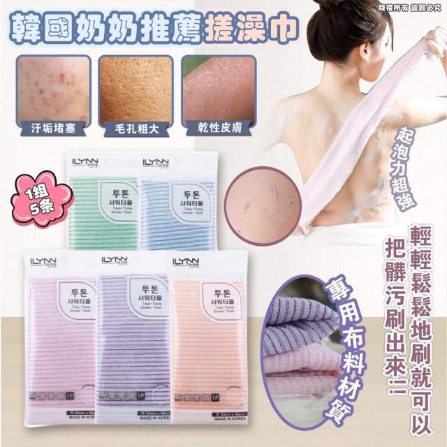 韓國 ILYNN 搓澡巾 (1套5條) (10月尾)