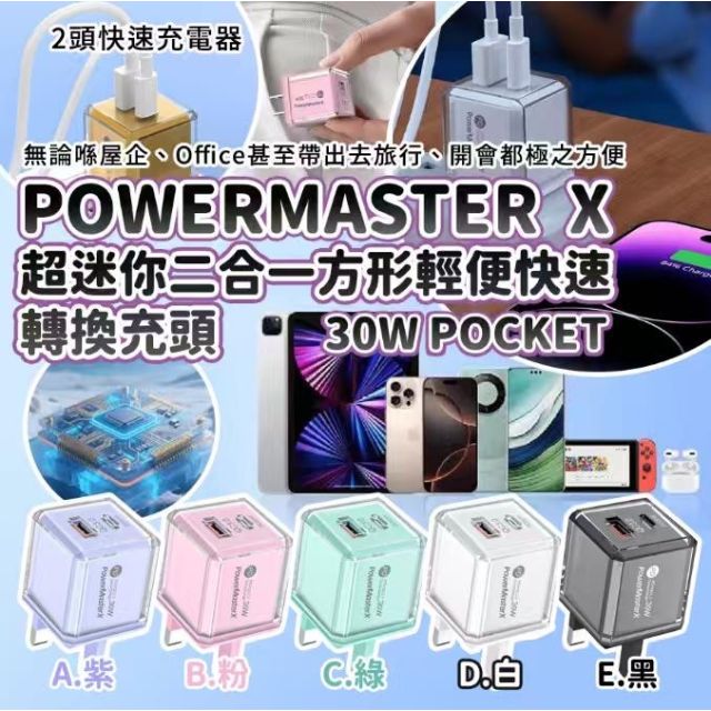 PowerMasterX 30W Pocket 超迷你二合一方形輕便快速轉換充頭(11月中)