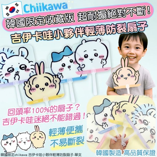 韓國限定 Chiikawa 吉伊卡哇小夥伴輕薄防裂扇子 (1套4件) (10月中)