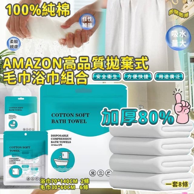 Amazon 高品質拋棄式毛巾浴巾組合 (1套8條) (9月尾)