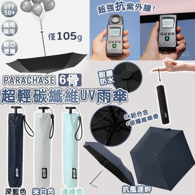 PARACHASE 6骨超輕碳纖維UV雨傘(9月尾)
