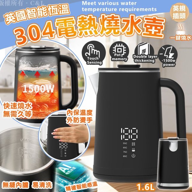 英國智能恆溫304電熱燒水壺1.6L (9月尾)