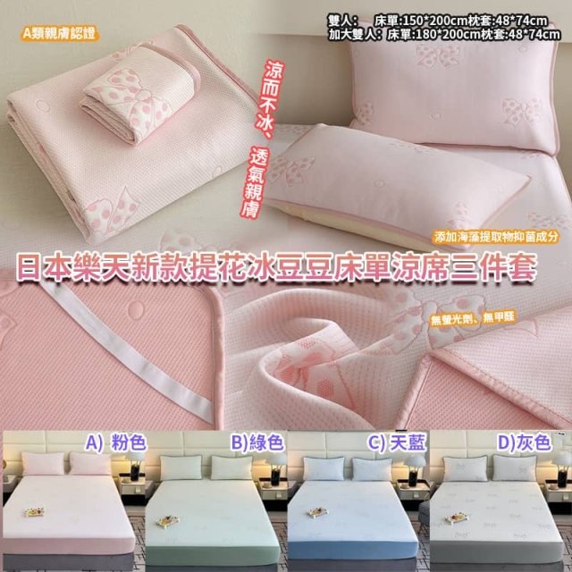 日本樂天新款提花冰豆豆床單涼席3件套(9月尾)