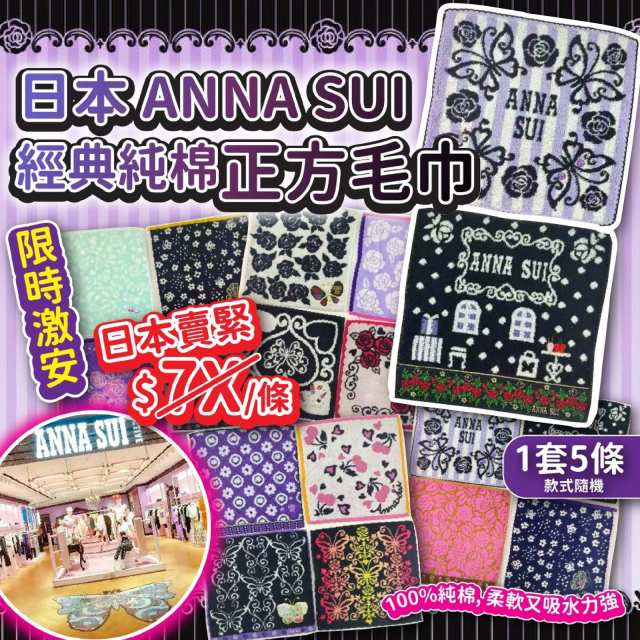 日本 ANNA SUI 經典純棉正方毛巾 (1套5條) (10月中)
