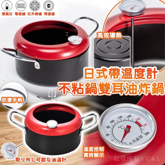 日式帶溫度計不粘鍋雙耳油炸鍋(9月尾)