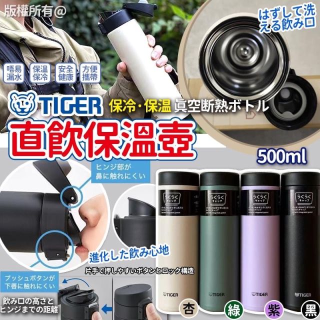 日本限定 Tiger 保冷保溫壺 500ml (10月中)