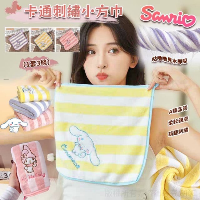 SANRIO 卡通刺繡小方巾 (1套3條) (7月中)