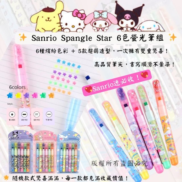 ✨ Sanrio Spangle Star 6色螢光筆組 ✨ (7月尾)
