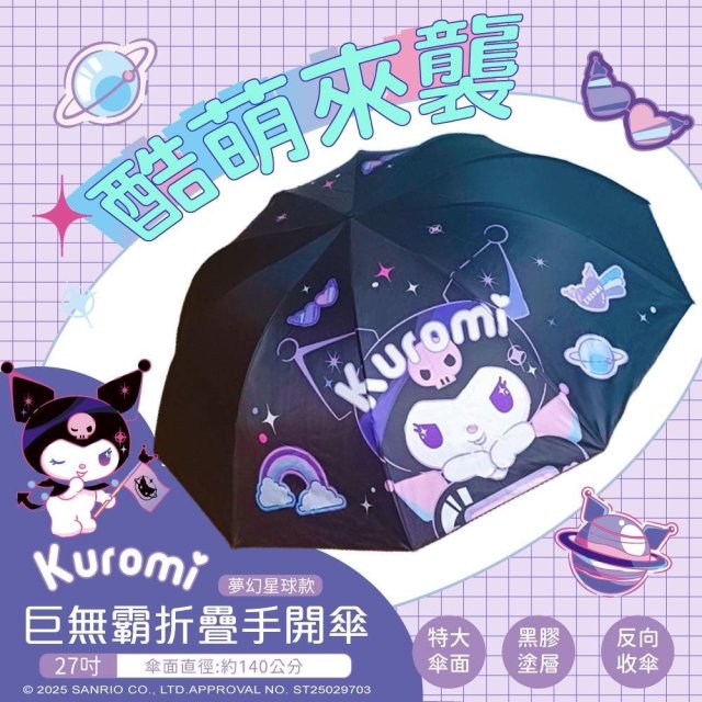 酷洛米 KUROMI 27吋超大情侶巨無霸摺疊手開傘(7月尾)