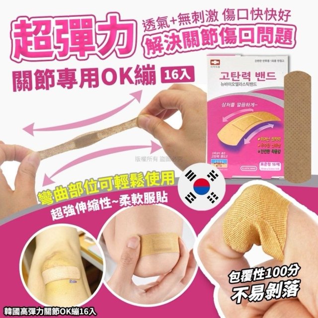 韓國高彈力關節OK繃16入(1套4盒) (7月中)