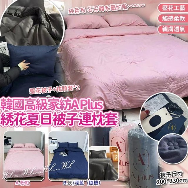 韓國高級家紡 A Plus 綉花夏日被子連枕套(7月尾)