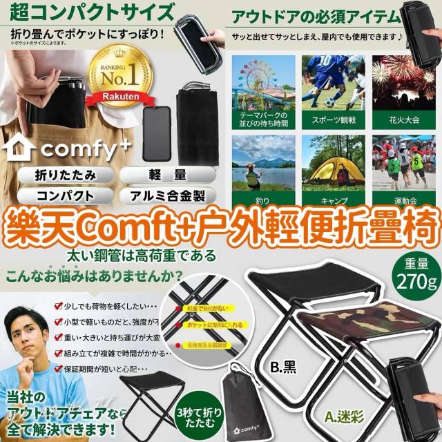 SS25 樂天 Comfy+ 輕便便攜户外折疊椅子(7月尾)