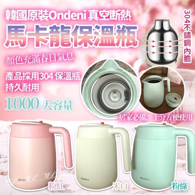 韓國原裝 Ondeni 真空斷熱馬卡龍保溫瓶 1000ml (6月尾)