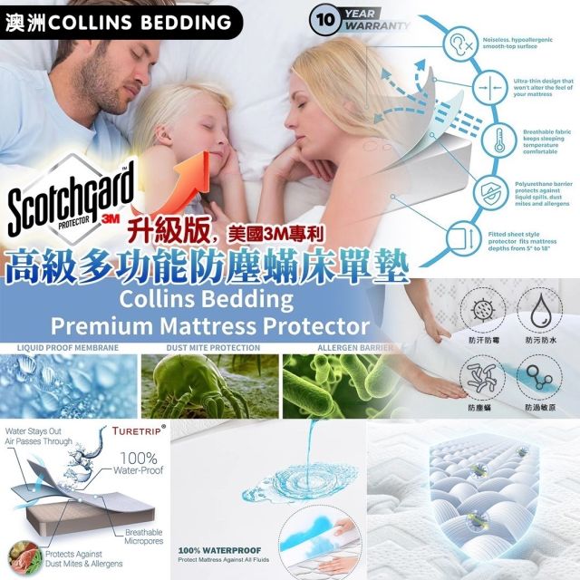 澳洲 Collins Bedding 升級版3M專利高級多功能防塵蟎床單墊(5月中)