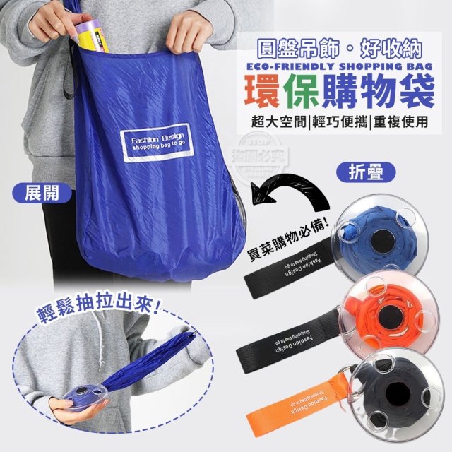 圓盤吊飾好收納環保購物袋(1套3個同色)(3月尾)