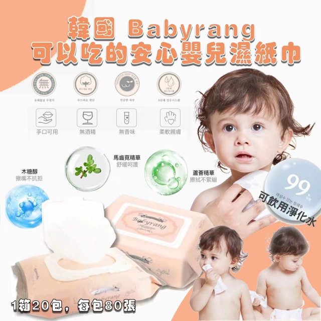 韓國 Babyrang 可以吃的安心嬰兒濕紙巾(1箱20包) 12月中